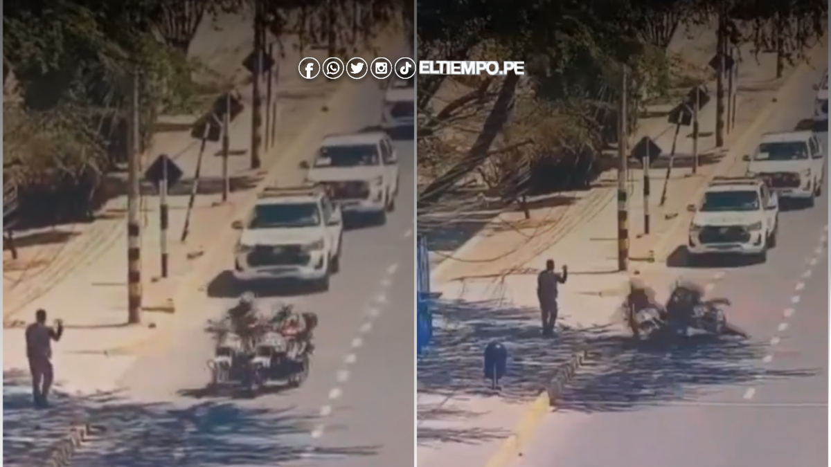 El martes, durante el desplazamiento de la caravana presidencial en Talara, dos policías motorizados que formaban parte del equipo de seguridad de Dina Boluarte colisionaron. El choque, captado por una cámara de seguridad, ocurrió mientras los agentes cumplían labores de escolta en una actividad oficial. A pesar del impacto, ambos efectivos resultaron ilesos y se encuentran en buen estado de salud, según informó Noticias Piura 360. Las motocicletas involucradas pertenecen a la PNP, y el incidente no generó mayores consecuencias para los agentes ni para la comitiva.