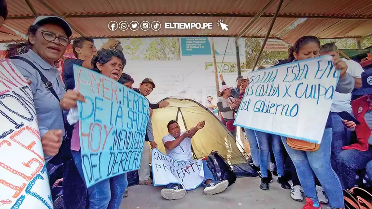 De otro lado, los miembros de Fenutssa colocaron carpas frente a la Dirección Regional de Salud (Diresa) para el inicio de su huelga de hambre por parte de nueve agremiados.
