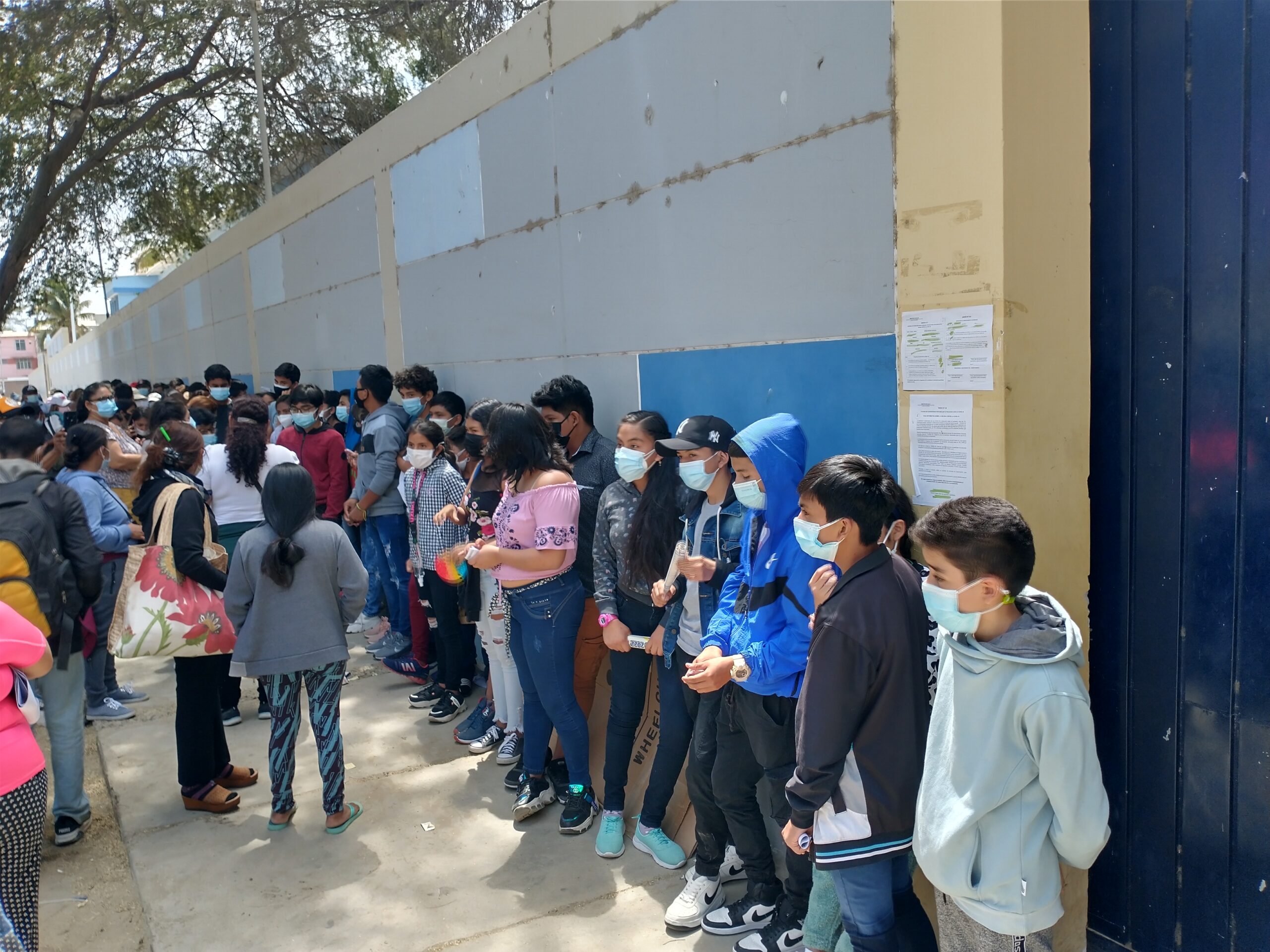 Pese a los avisos de la Dirección de Salud (Diresa) sobre que la vacunación solo sería para los menores que estudiaban en este colegio, los padres exigían acceder a la vacunación.