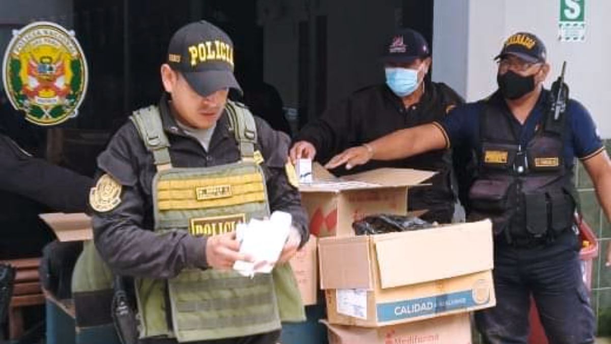 En la vivienda de material rústico, se encontró la cantidad de 53 cajas color beige de cartón con etiquetas donde se lee: «Medifarma-Jr. Ecuador Nº 787-Lima-Perú, Av. Santa Rosa 390-Urb. Aurora-Ate-Lima-Perú». Las cajas contenían cientos de frascos de diferentes colores, al parecer medicamentos (jarabes).