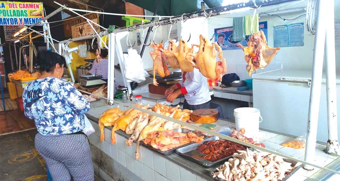 Se verificó que las amas de casa se quejan del alto precio del kilo del pollo en el mercado de Piura. La comerciante mayorista de esta ave, Doris Requena, indicó que de las avícolas sale elevado el precio por kilo entero.