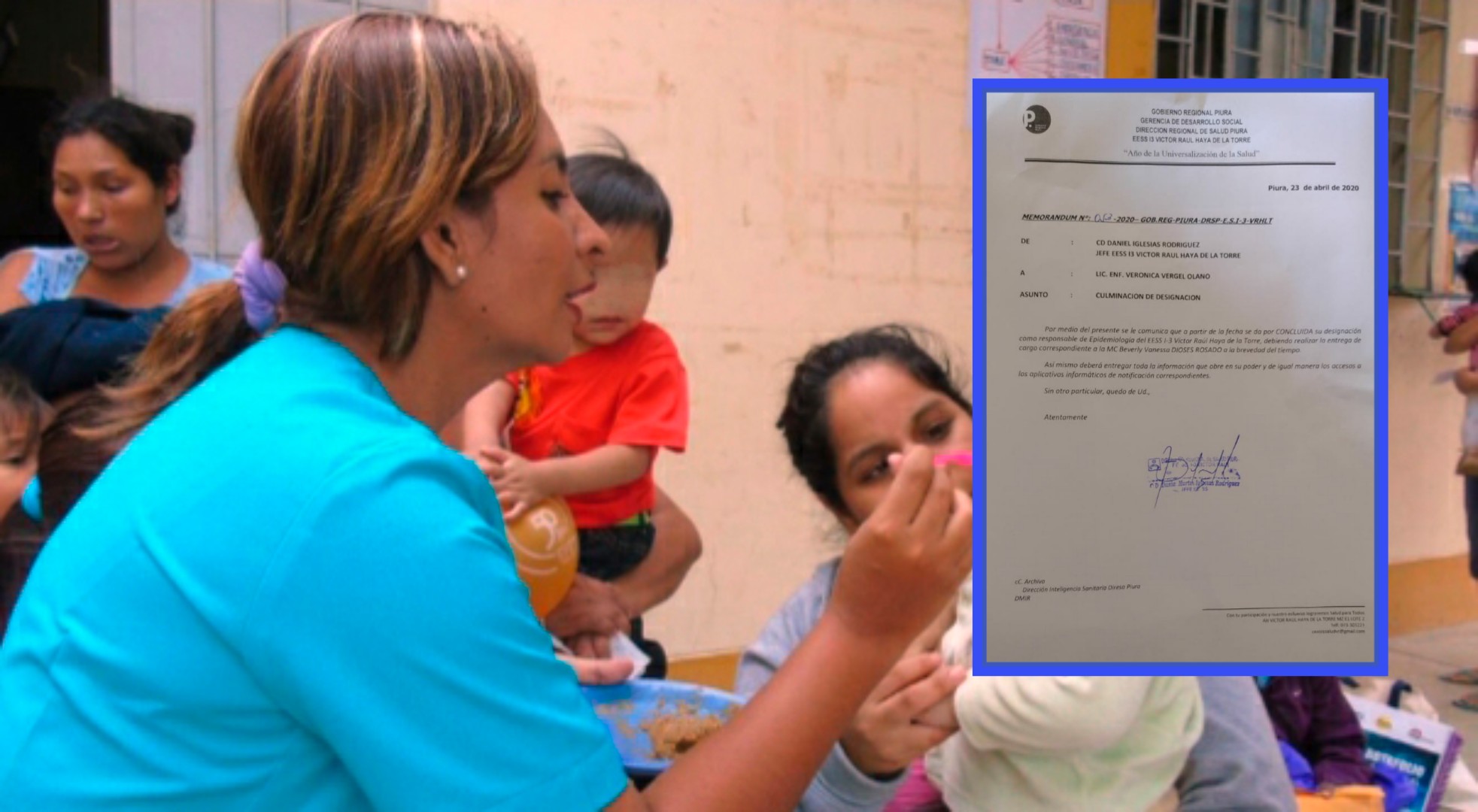 Esta mañana se conoció que la enfermera piurana Verónica Vergel Olano fue removida de su cargo como responsable de Epidemiología del EESS-I-3 Víctor Raúl Haya de la Torre, y que debía entregar su cargo a otra trabajadora.