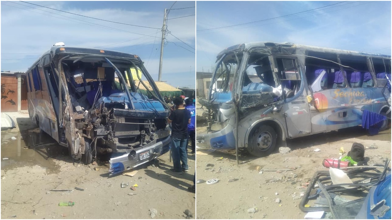 Según medios locales, un bus de ‘Sechura Express’ sufrió un accidente en la carretera de Sechura frente al caserío Chusis.