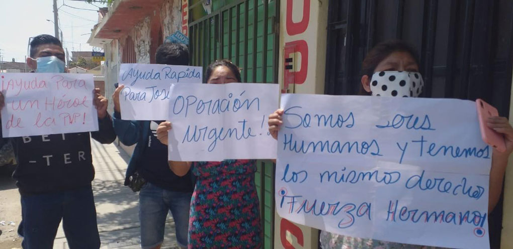 Ellos denunciaron que en estos cuatro días se siente abandonados por parte del comando institucional de la PNP. Indican que Ortiz Nuñez fue llevado por sus compañeros al hospital regional Cayetano Heredia, donde lo dejaron prácticamente abandonado, y a la fecha no lo operaba a pesar de la grave lesión.
