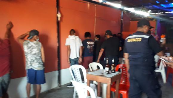 En el interior del local se halló a un grupo de hombres y mujeres ingiriendo bebidas alcohólicas, sin ningún tipo de precaución y respeto a las medidas establecidas por las autoridades de salud.