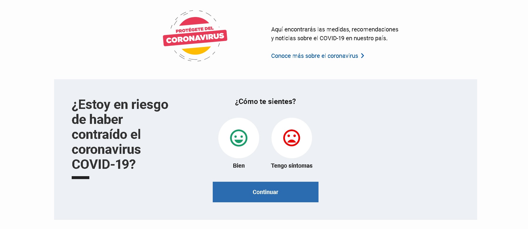 En el portal se podrá acceder a un cuestionario para un “triaje digital” en el que las personas deberán responder una serie de preguntas. Esto permitirá responder la «posible sospecha» de los ciudadanos que deseen saber si son portadores o no del virus.