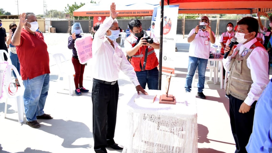 La Dirección Regional de Salud (Diresa) juramentó cinco comités anti Covid en el distrito Veintiséis de Octubre de los sectores Villa Perú–Canadá, Paredes Maceda, Jorge Chávez, Las Vegas y Enace.