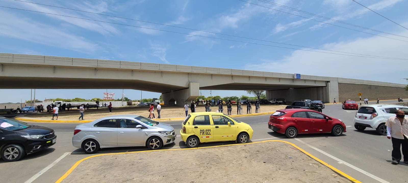 La protesta se desarrolla en la carretera que conecta a las ciudades Piura y Catacaos, con la llegada de la policía se impidió el bloqueo de la vía.