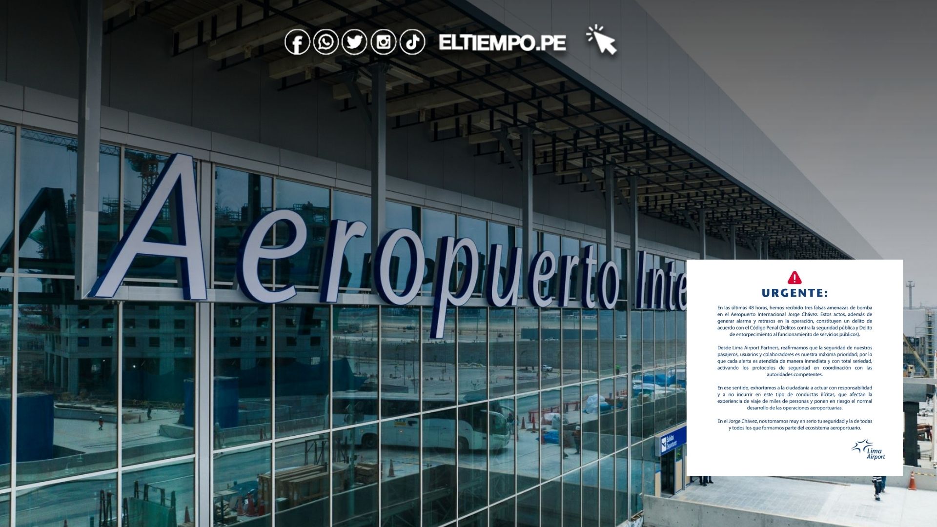 En relación con una de las alertas reportadas, LAP confirmó que la supuesta amenaza de bomba fue descartada tras las verificaciones realizadas junto con la aerolínea afectada y la Unidad de Desactivación de Explosivos (UDEX) de la Policía Nacional del Perú.