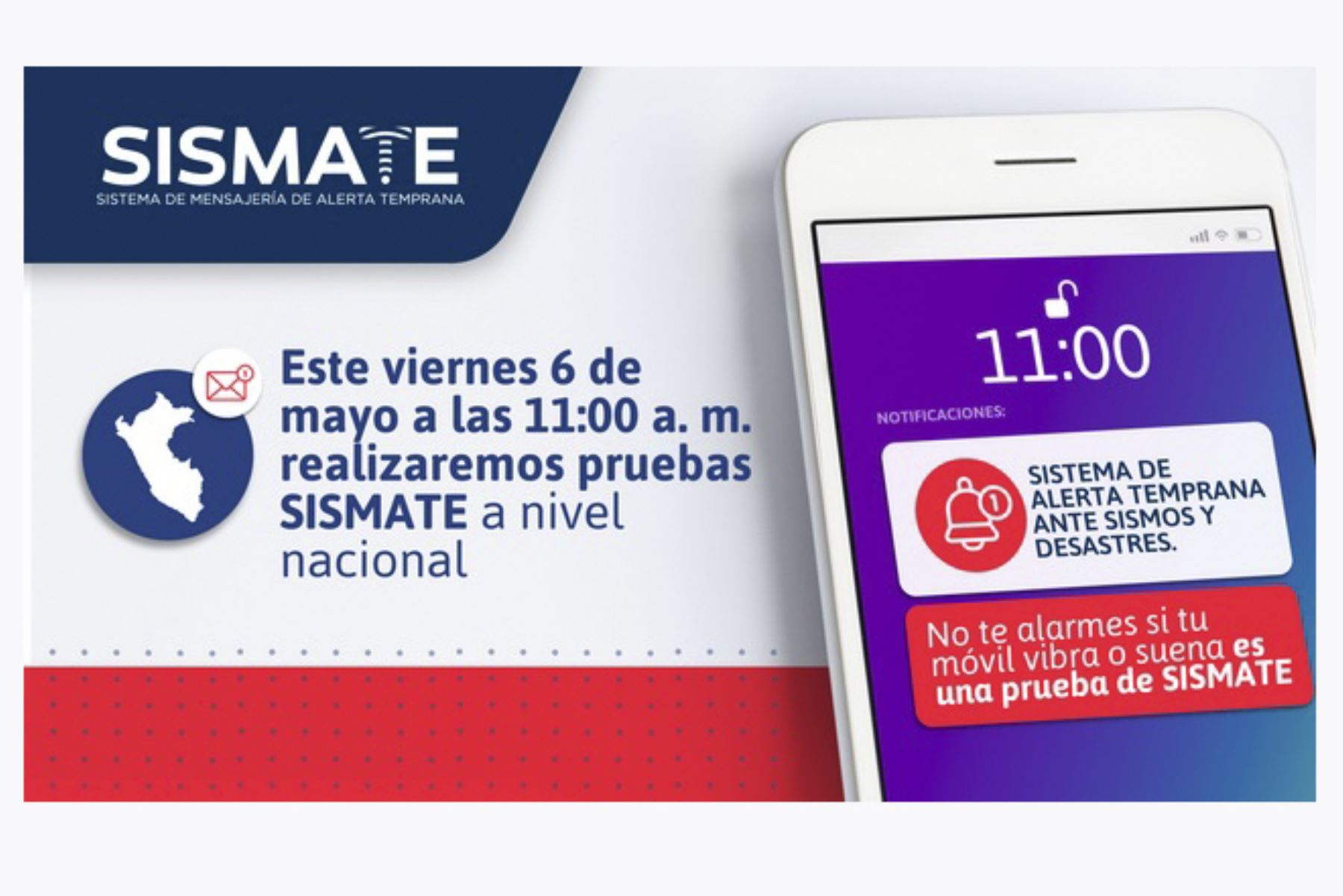 El Sistema de Mensajería de Alerta Temprana (SISMATE) es una herramienta tecnológica que permite el envío de mensajes de alerta (texto, sonido, iluminación de pantalla y vibración) a los ciudadanos que cuentan con celular a través de todas las operadas y con cualquier tipo de telefonía móvil.