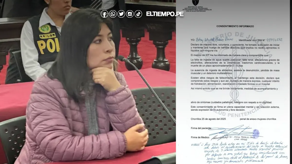 La ex primera ministra Betssy Chávez enfrenta un delicado estado de salud tras cumplir tres días en huelga de hambre seca en el penal Anexo Mujeres de Chorrillos. Según un informe médico del INPE, si continúa con esta protesta extrema, su organismo podría colapsar en las próximas 72 horas, lo que pondría en riesgo su vida.