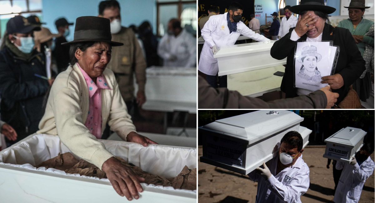 Los cuerpos serán enterrados en el centro poblado peruano donde ocurrió la masacre de 69 personas, según cifras oficiales.