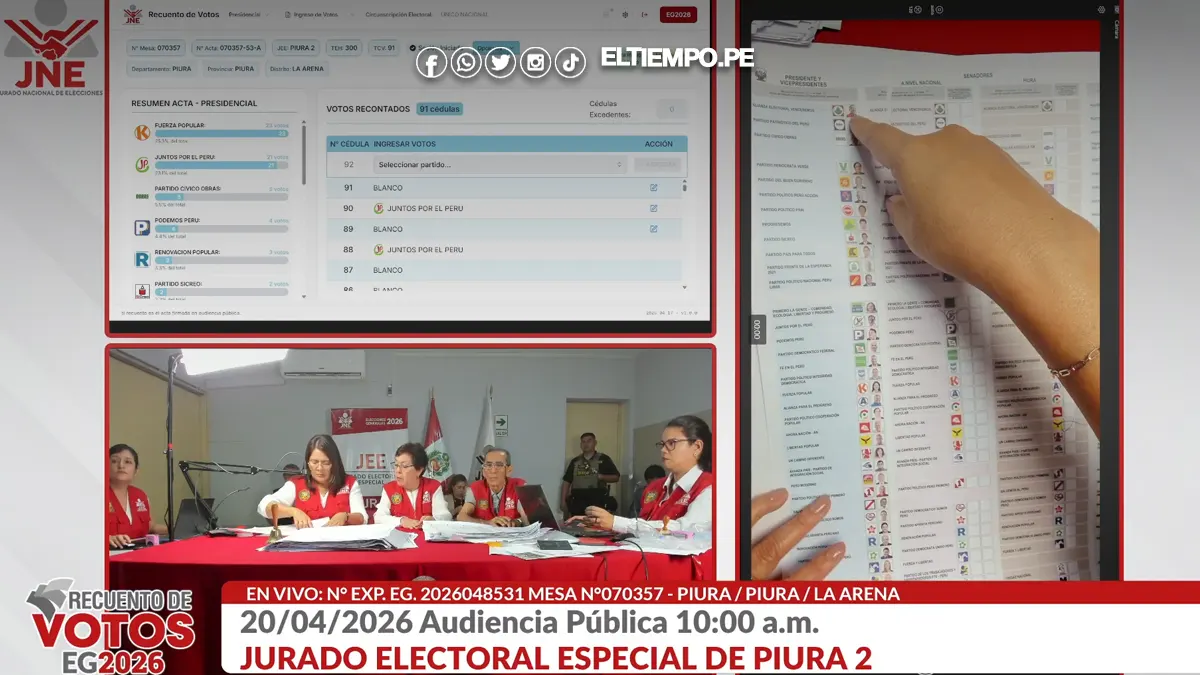 En el marco de las Elecciones Generales 2026 (EG 2026), el proceso electoral peruano entra en una fase decisiva de transparencia y verificación. Diversos Jurados Electorales Especiales (JEE) iniciarán este lunes 20 de abril las audiencias públicas de recuento de votos de mesas de sufragio específicas, según informó oficialmente el Jurado Nacional de Elecciones (JNE).