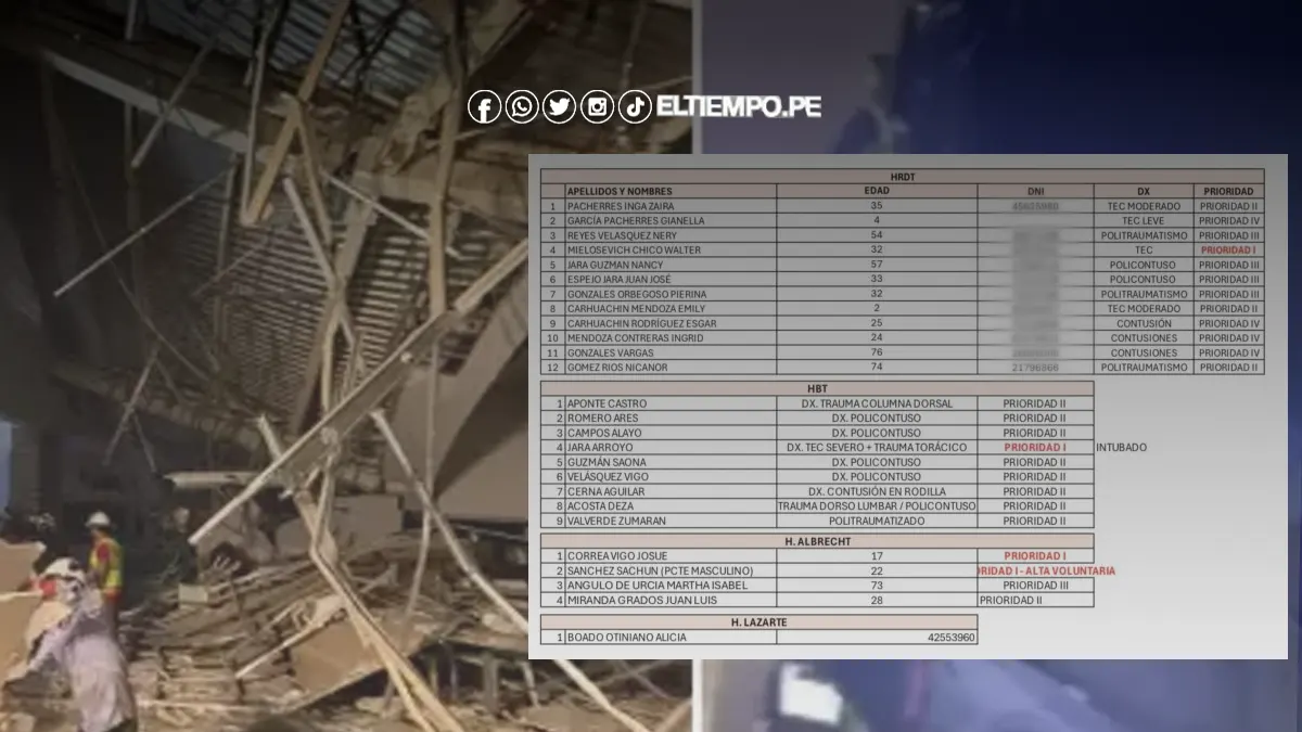 Lista de heridos en el accidente de Real Plaza en Trujillo | Lo que debería haber sido una noche tranquila en el centro comercial Real Plaza Trujillo se transformó en una tragedia cuando, de manera inesperada, el techo del patio de comidas se desplomó. Hasta el momento, las autoridades han confirmado cuatro muertos y más de 70 heridos, entre los que se encuentran 11 niños en estado grave.