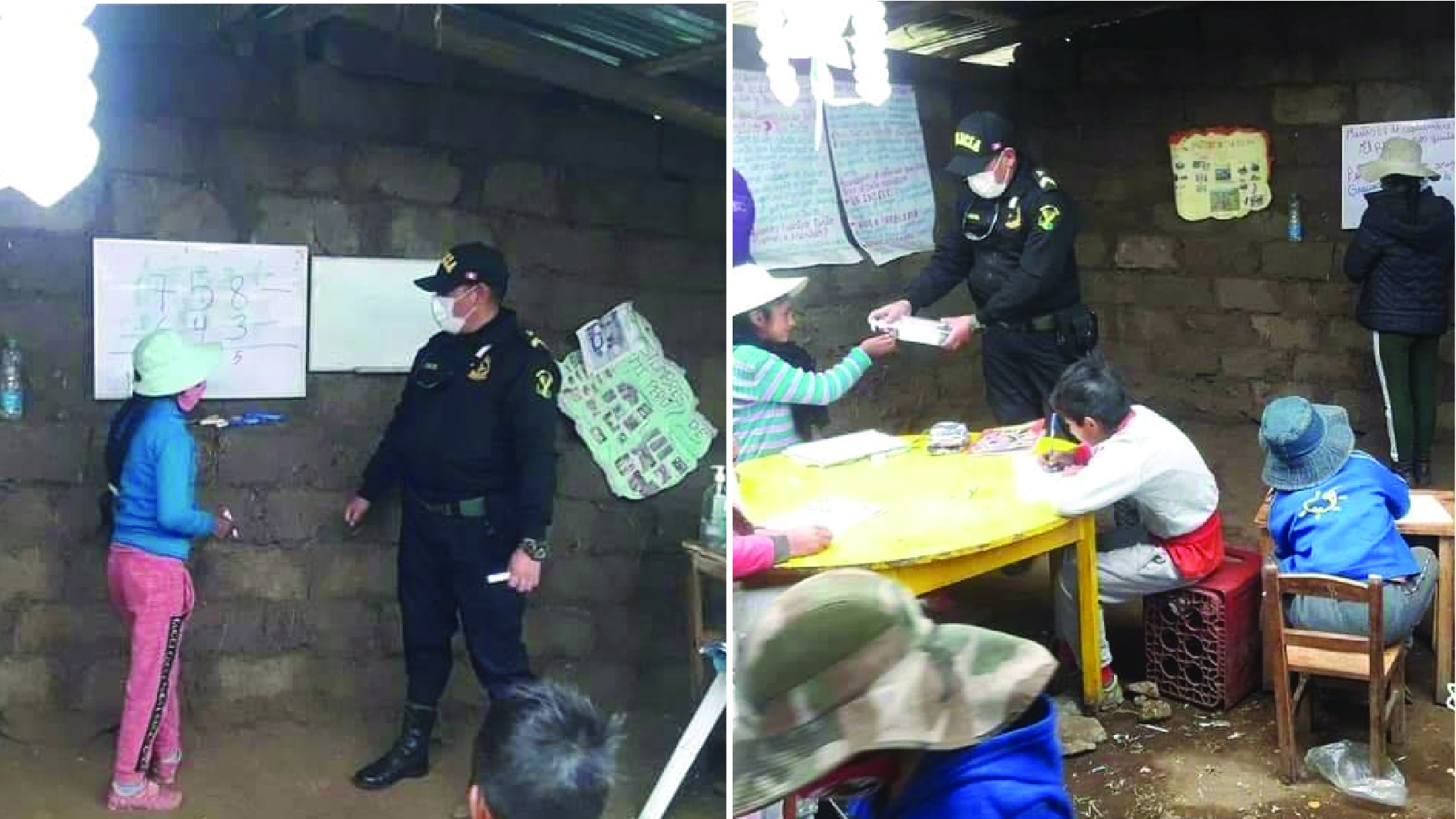 El hecho ocurrió en la comunidad de Chullcuisa Alta donde los mencionados efectivos policiales utilizan parte de su tiempo para dar capacitación y refuerzo escolar en matemáticas a niños de primaria de zona alejadas que no tienen acceso a internet.