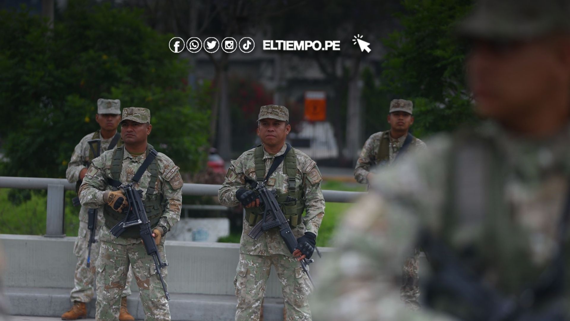 Desde primeras horas del día, los militares patrullan avenidas principales, estaciones del Metro de Lima, cruces de vías de alto tránsito y centros comerciales.