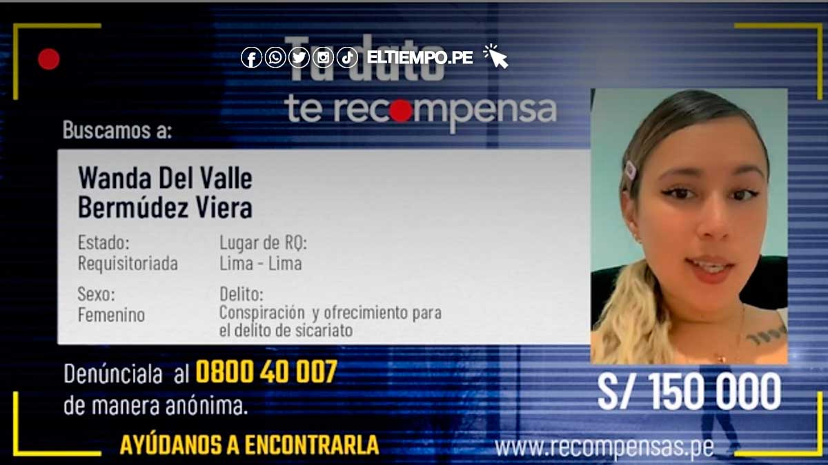 Entre las más buscadas. Wanda del Valle Bermúdez Viera, expareja del abatido delincuente Christopher Fuentes González, alias ‘Maldito Cris’, ingresó al Programa de Recompensas del Ministerio del Interior (Mininter) y desde hoy se ofrece S/ 150,000 por información que conduzca a su captura.