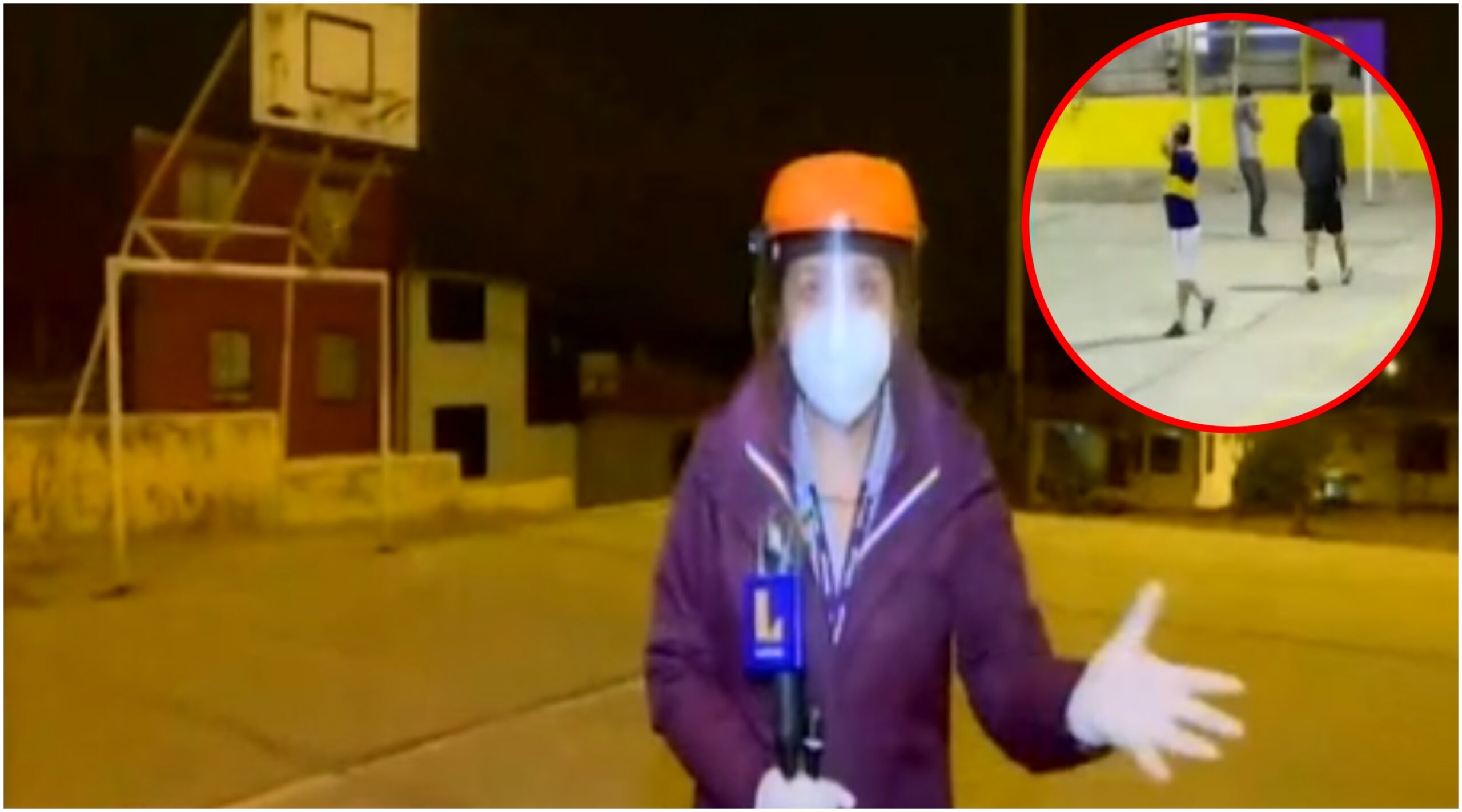 Una periodista del noticiero 90 Noche de Latina denunció que fue atacada con piedras por un grupo de sujetos que se encontraba jugando fulbito en una losa deportiva de la Asociación Laderas de Villa, en San Juan de Miraflores, Lima.