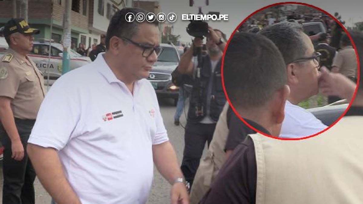 Testigos señalaron que el titular del Mininter intentó calmar los ánimos saludando a la multitud e incluso habría realizado el gesto de enviar un beso volado, lo que generó mayor indignación entre los presentes.