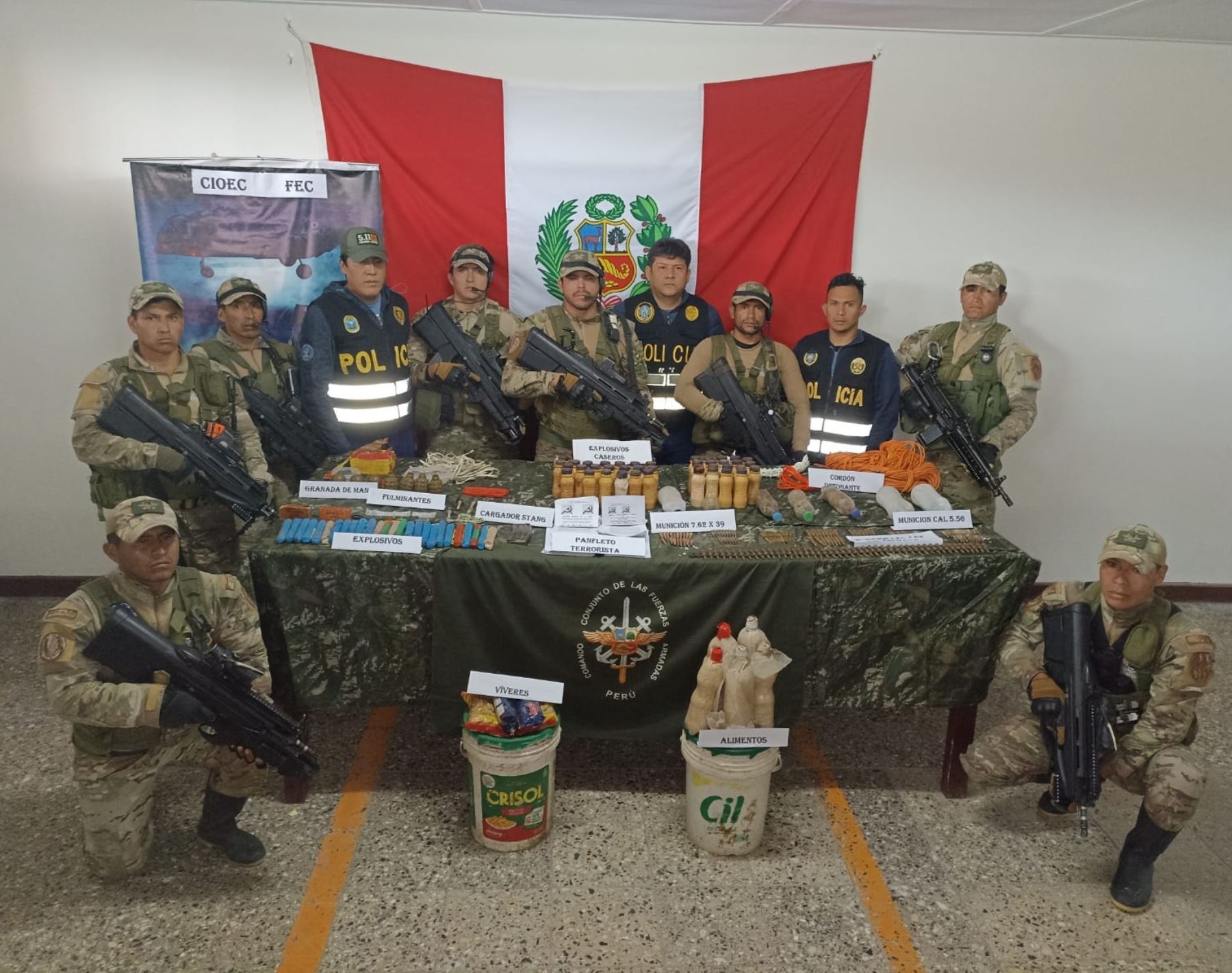 Una patrulla combinada de operaciones especiales de las Fuerzas Armadas y de la Policía Nacional incautó material bélico y propaganda subversiva de Sendero Luminoso durante un operativo ejecutado en el Valle de los Ríos Apurímac, Ene y Mantaro (Vraem).