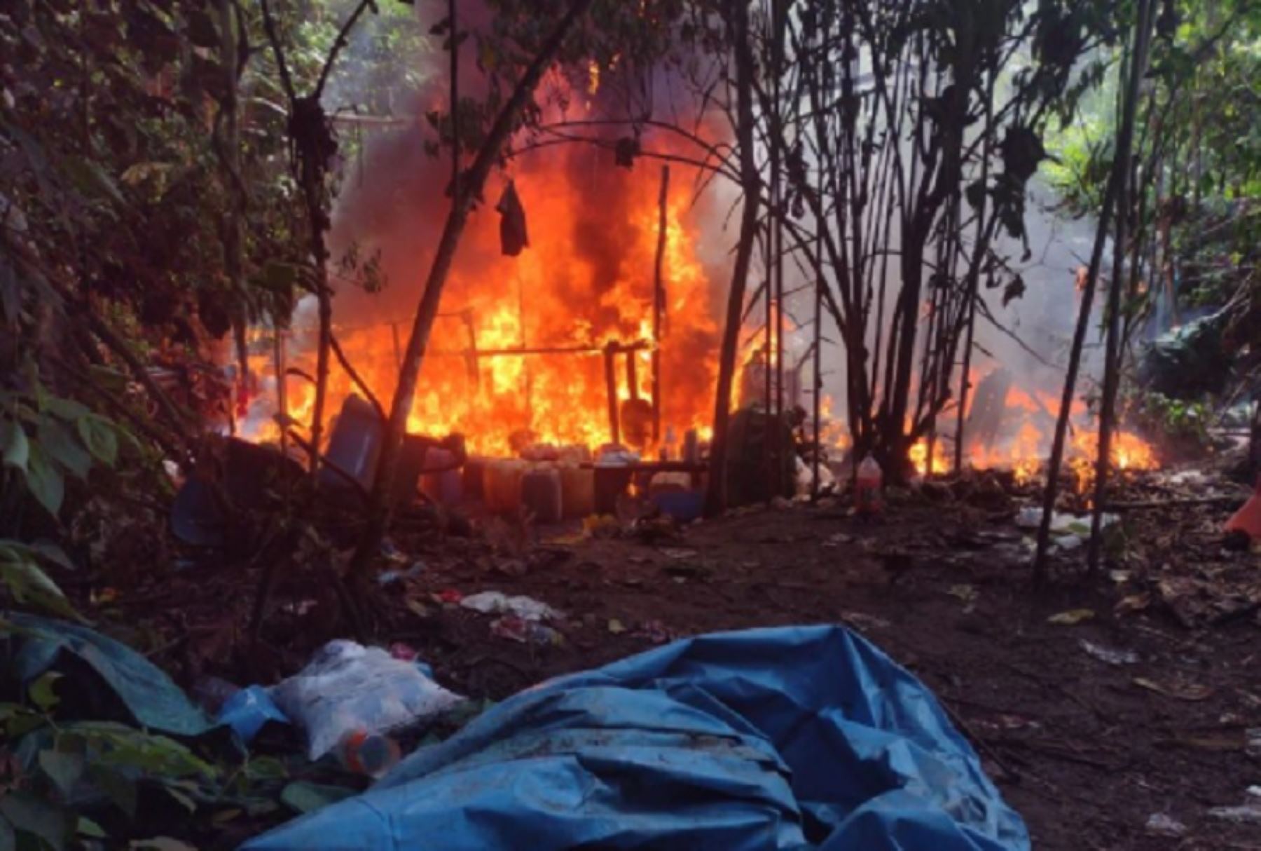 Los laboratorios e insumos químicos fueron destruidos e incinerados en presencia de los fiscales contra el terrorismo y narcotráfico, de acuerdo al siguiente detalle: cinco pozas de maceración de hoja de coca; 1,420 galones de gasolina; 20 galones de amoniaco, tres motobombas, 20 bolsas de cemento, y 300 kilos de sal yodada.