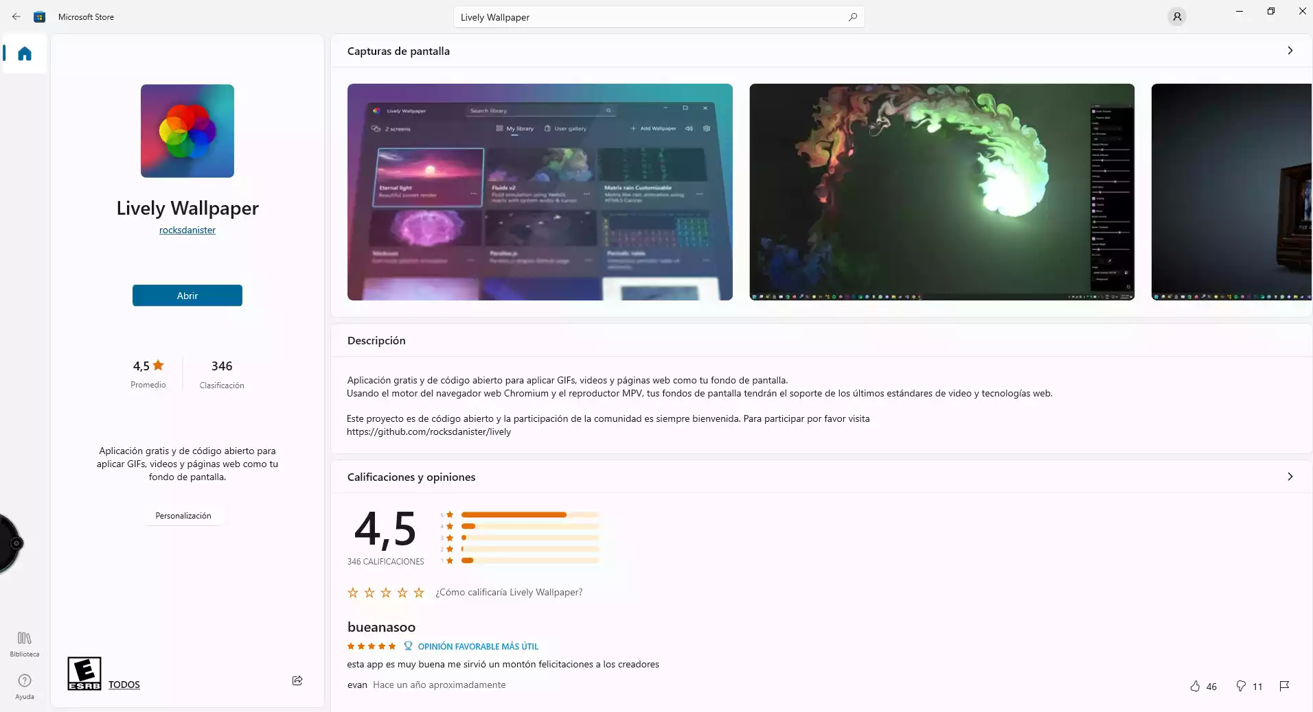 La instalación de Lively Wallpaper es un proceso bastante simple, similar al de cualquier otro software y sin costo alguno que se encuentra disponible para su descarga directa en la tienda de Microsoft.