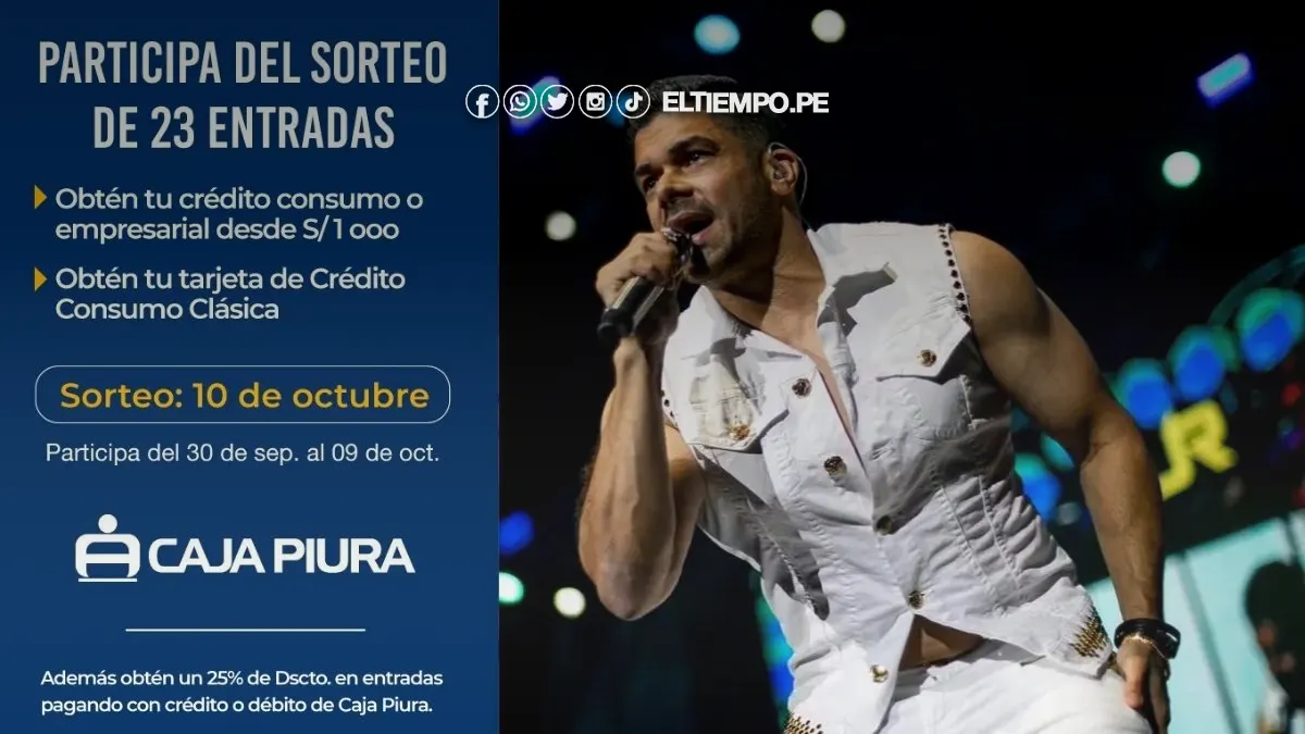 La entidad financiera realizará un sorteo con sus clientes y se realizará el 10 de octubre. Además, disfruta un 25% de descuento al comprar tus entradas con tu Tarjeta de Crédito o Débito Caja Piura (No aplica para box). El descuento estará vigente del 30 de septiembre al 6 de octubre.