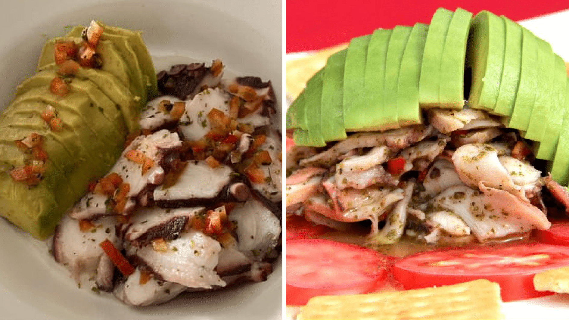 - Cortar el pulpo en rodajas o láminas para servir, agregar aceite con ajo y hierbas y acompañar de tomate, palta y tostadas.
