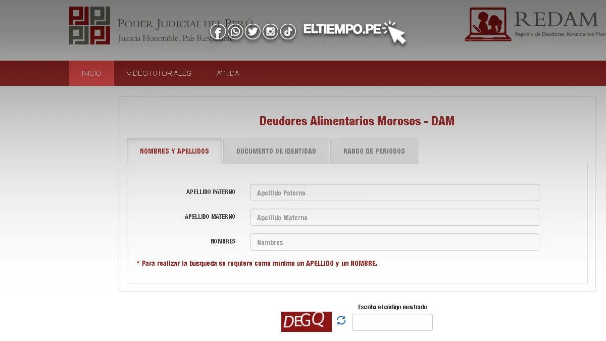 - Completar el formato de solicitud: Descarga y completa el formato de solicitud de inscripción en el REDAM, disponible en el sitio web del Poder Judicial del Perú.