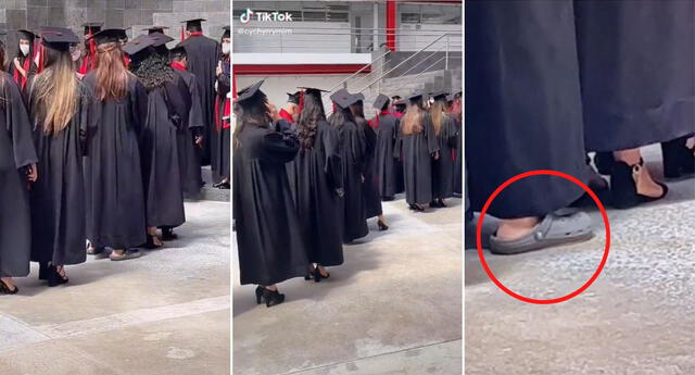 Tal es el reciente caso de un video que ha llamado la atención de miles de usuarios en TikTok y es que en este se puede ver un singular momento en media de una ceremonia de graduación. Resulta que una de las jóvenes fue captada usando chancletas en lugar de tacos.
