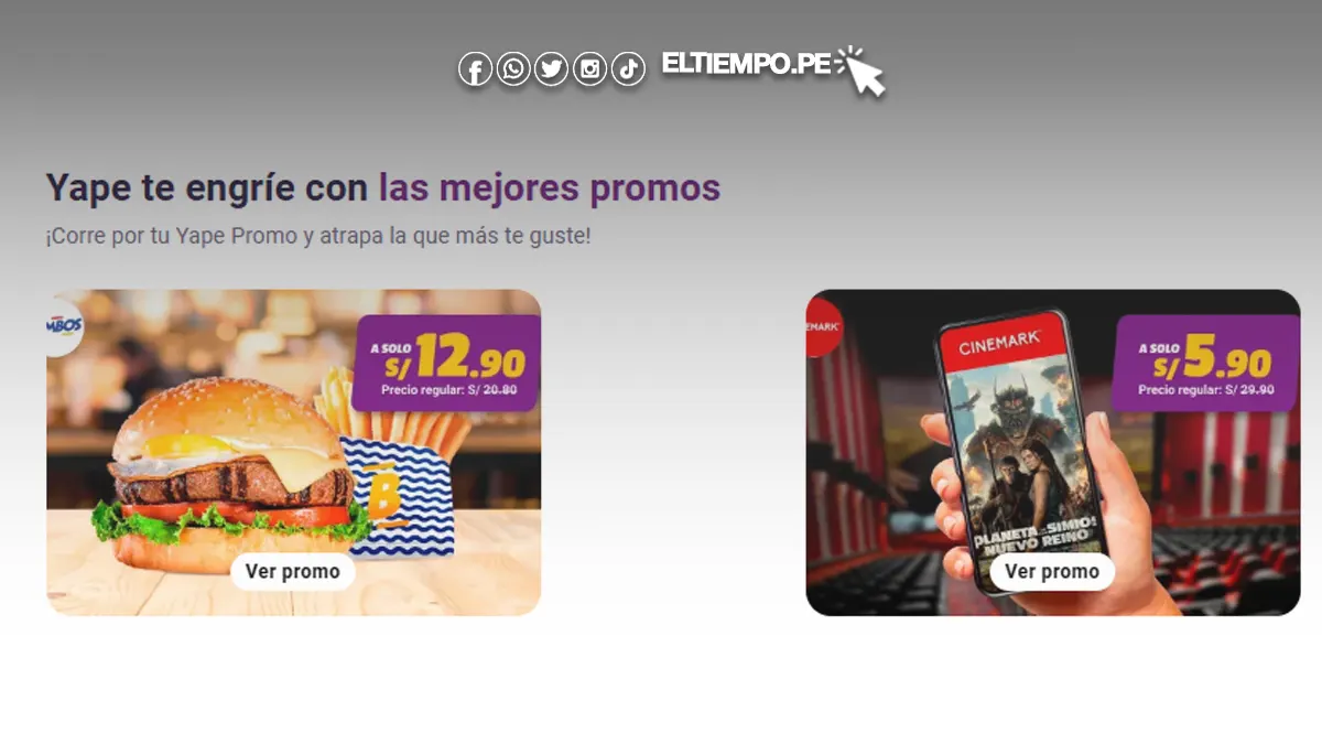 Yape también anuncia sus promociones a través de sus redes sociales. Síguelos en Facebook, Instagram y Twitter para estar al tanto de todas las novedades.